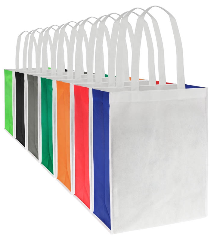 Bolsa ecológica blanca con fuelle de color, dos formatos disponibles : 32x40x15 y 20x25x7,7 cms.