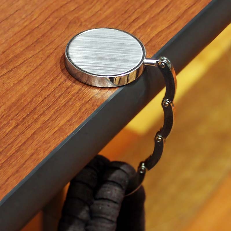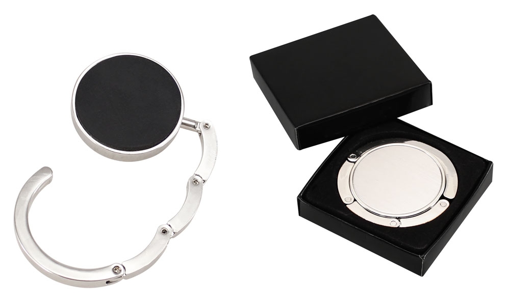 Colgador Metálico Grande de sobremesa para Bolsos y Carteras, modelo «Spiral». Presentación en estuche laminado negro con cuna aterciopelada.