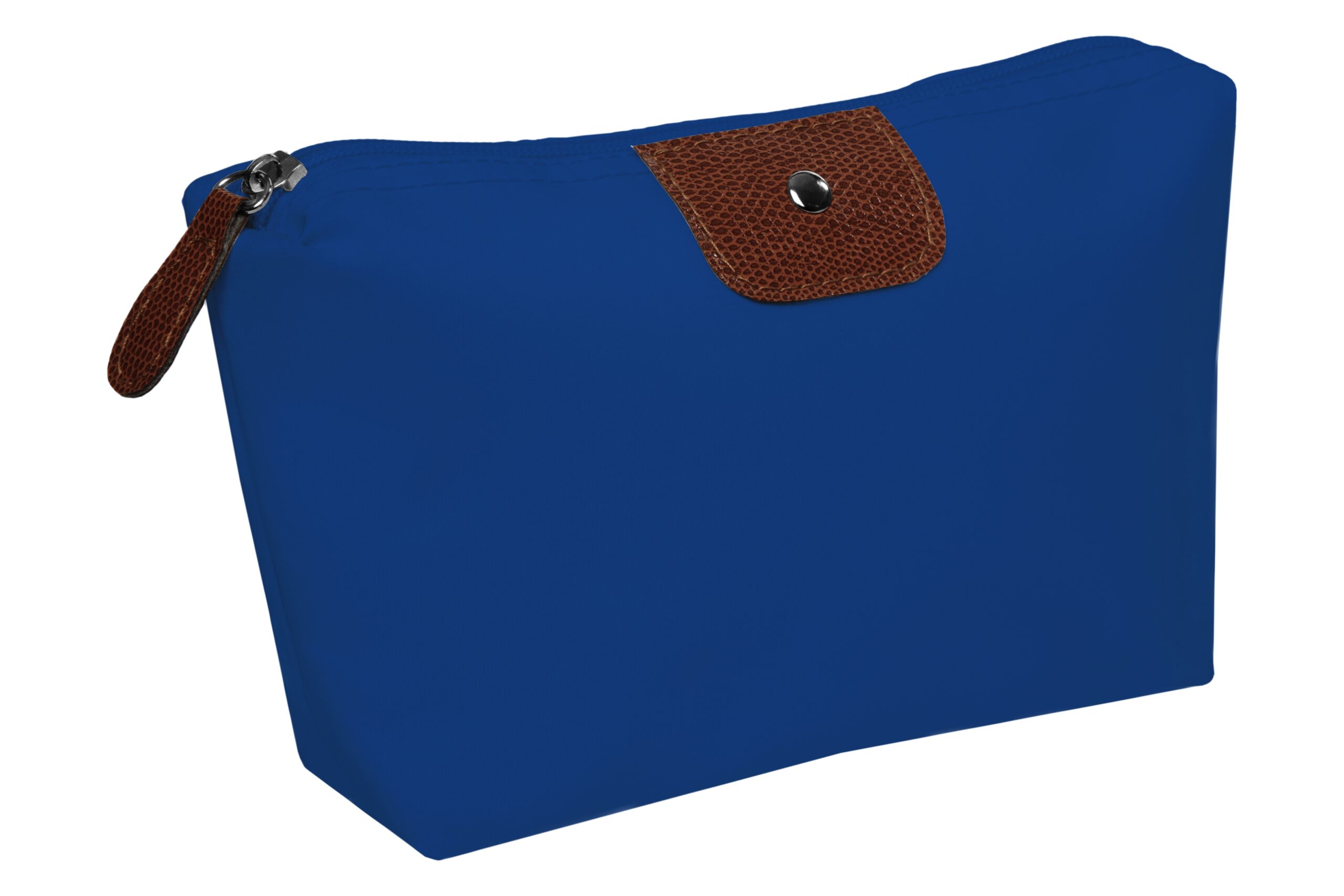Tamaño 22 x 13 x 5,5 cm. Polyester. Necessaire con detalles en símil cuero y un botón metálico en el frente. Interior con forro. Tiradores de cierre de símil cuero.