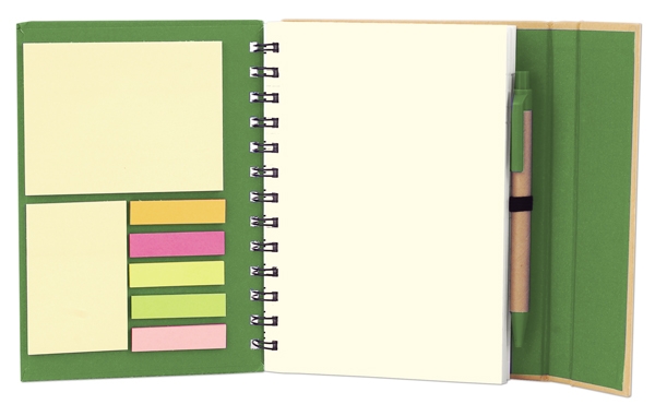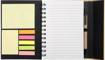 Cuaderno de cartón con espiral. tapa dura Duo Color, cierre imantado, incluye dos post it rectangulares (grande y mediano), cinco post it señaladores de diferente color más lápiz ecológico al tono. 80 Hojas composición. tamaño 18 x 13,5.