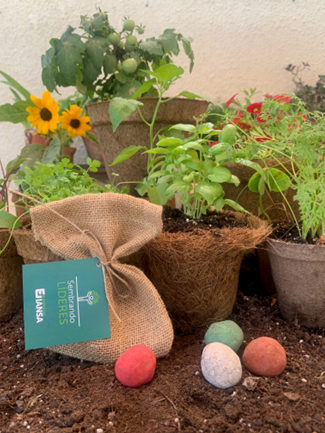 • 1 bomba hecha de arcilla, abono y semillas. A elegir una variedad entre tomate, cilantro, albahaca y Dedal de oro.