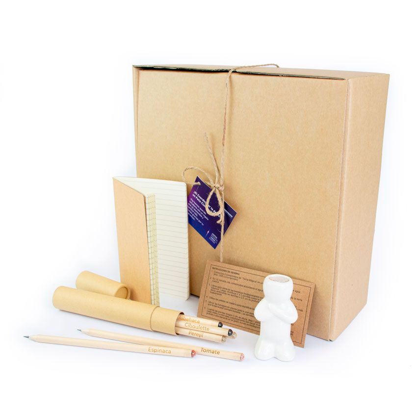 • 1 estuche con lápices con semillas, que incluye 6 lápices grafito tamaño 19 x 2,2 cm de diámetro, impresos con el nombre de la semilla que contienen:  albahaca, perejil, ciboulette, tomate, lechuga, espinaca.