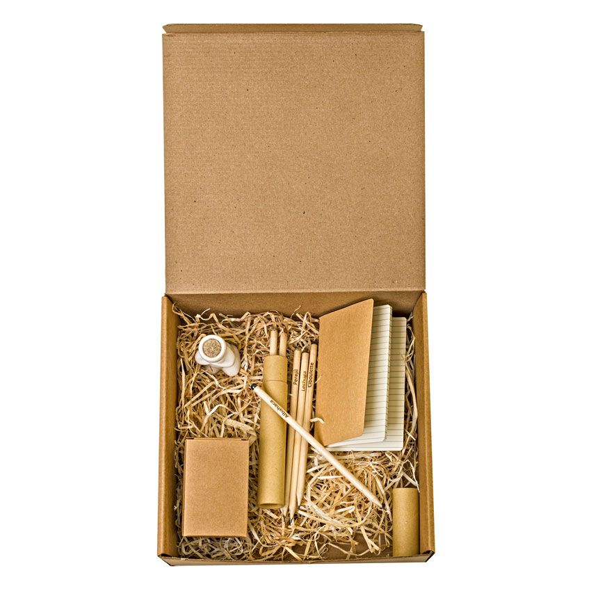 • Caja cartulina kraft de 300 gr, tamaño 25 x 25 x 10 cm, amarre con cordel de yute.