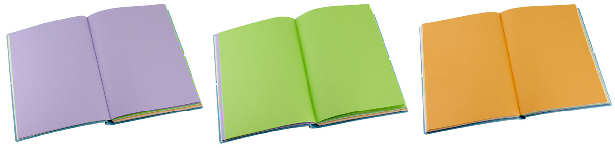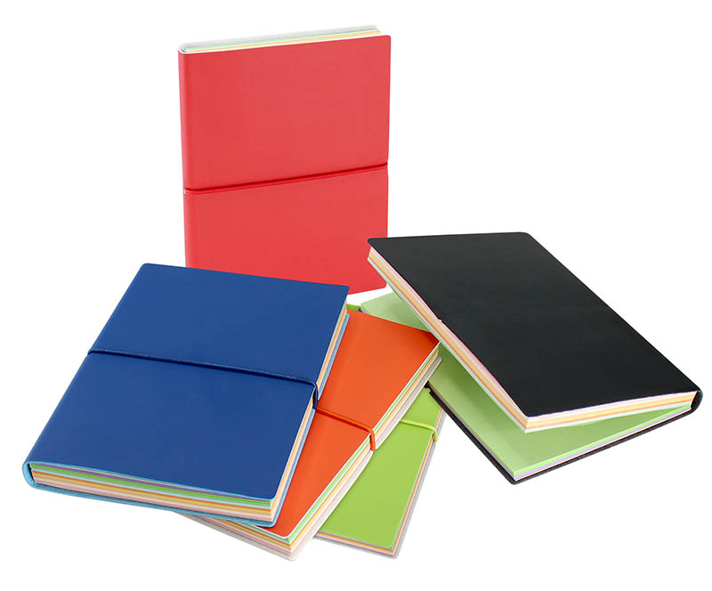 Libreta «High Class» con cubierta de PU color. Interior 144 hojas lisas 80g/m2 con 9 colores de papel diferentes. Tamaño 13,4 x 18 cms.