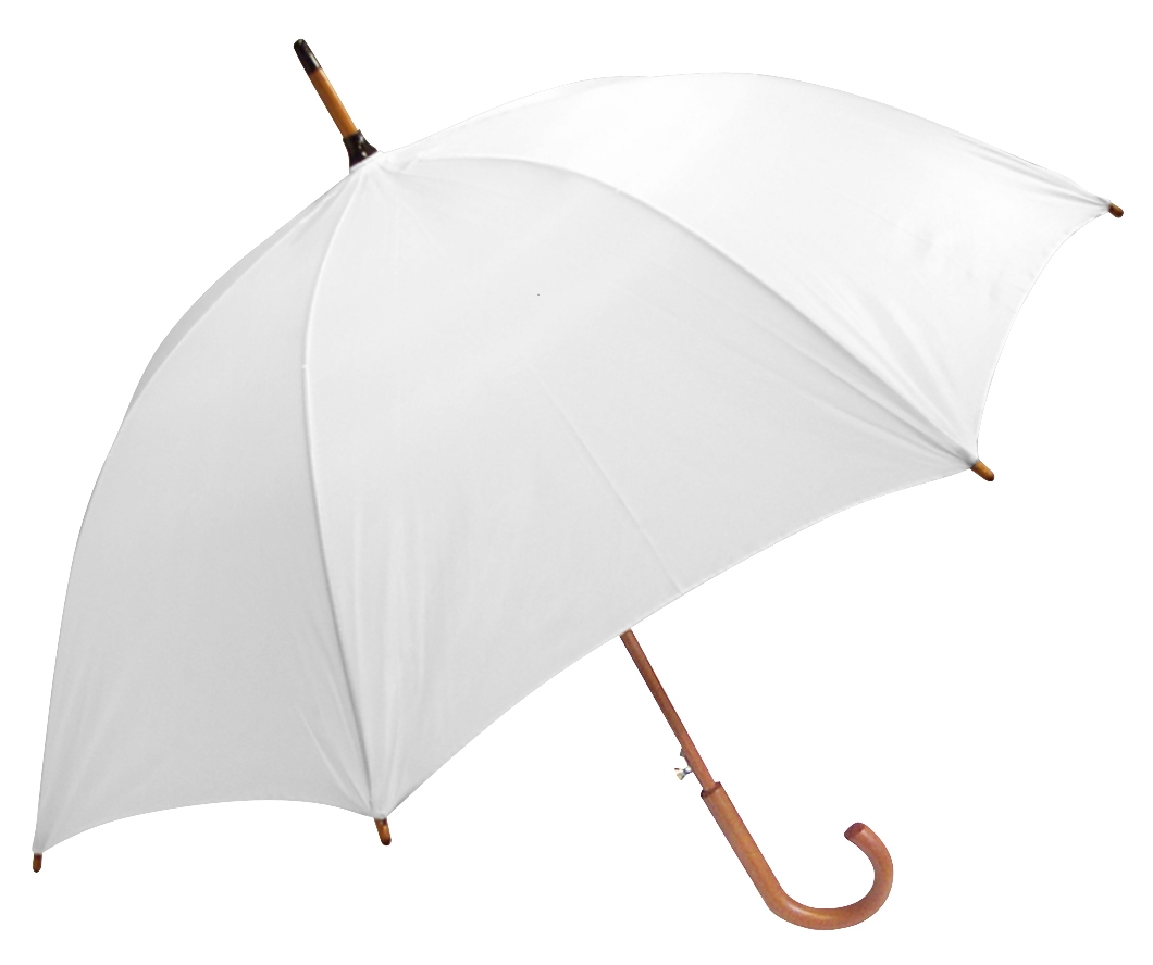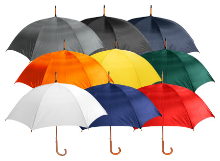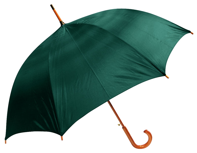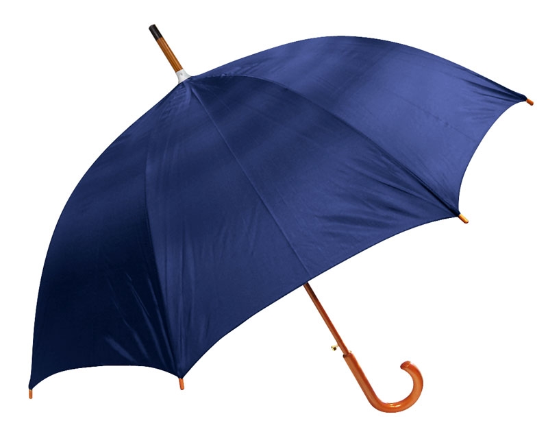 Paraguas ejecutivo con cuerpo y mango curvo de madera barnizada. Varas reforzadas de fibra de vidrio, sistema de apertura automático, 8 cascos tela Nylon 190T. Ø 104 x Alto 90 cm.