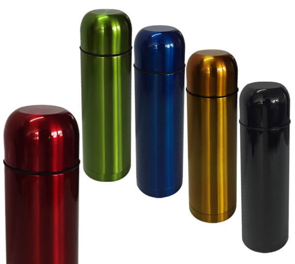 Termo de acero inoxidable SS201 exterior,SS304 interior,con tapa rosca y dosificador en distintos colores. Capacidad de 500 ml.