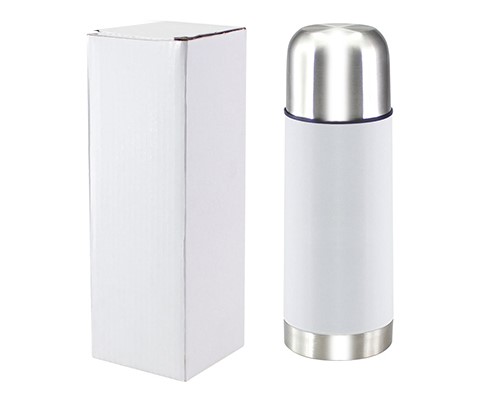 Termo para sublimación de acero inoxidable. Capacidad de 350 ml. Presentación en caja de cartón blanca.