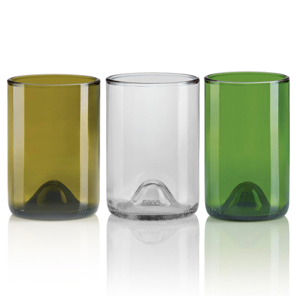 Vaso reciclado, 100% personalizado, confeccionado en base a botellas de vidrio, impreso vitrificado o grabado laser ,con su propia temática o diseño, producto sustentable amigo del medio ambiente. Color según disponibilidad : transparente, verde o ámbar, 480 cc.